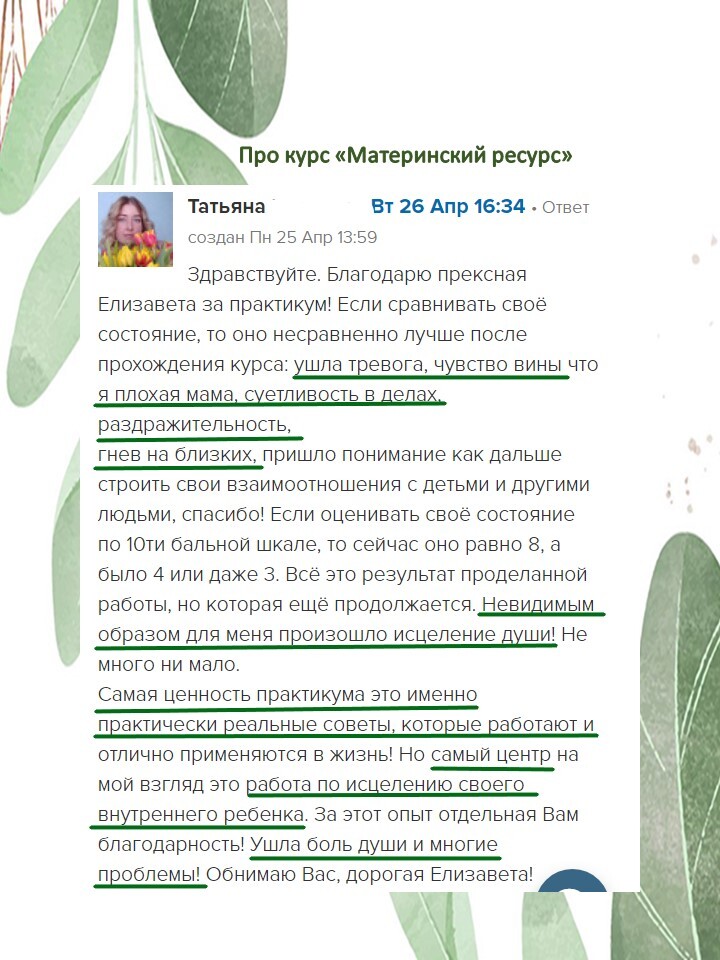 Впечатления Веры о курсе Воспитание в радость